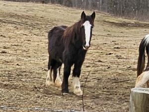 Boaz is an exceptional example of the Friesian/Gypsy cross. He is by Pendragon, the beautiful Gypsy Vanner and out of a 16.1 Friesian mare. He currently stands at 15.1 hands and is still growing....