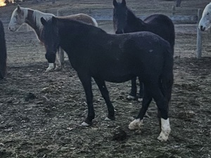 Nice black Friesian/TWH cross. This beautiful young mare is gaited with a touch of Frieisan looks....