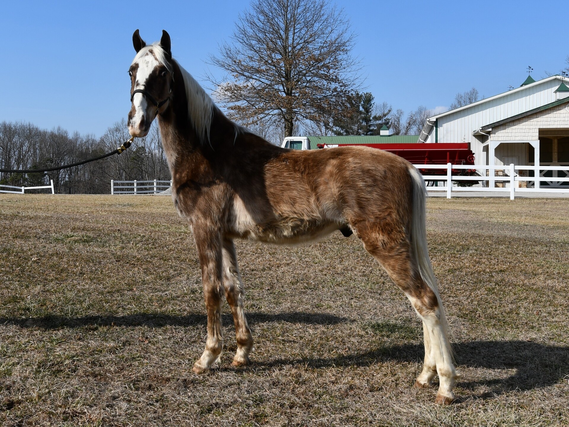 Indian Style is the epitome of outstanding color! He is a dark black silver sabino with a white mane and tail. This colt is by one of the most proven stallions I have ever known and out of a direct Pushover mare. His sire has consistently produced good minded and naturally gaited trail horses. This colt has potential in every arena from trail to show to the breeding barn! He has the presence of Pushover lines and the color people dream about. This young fella will only get better with age!