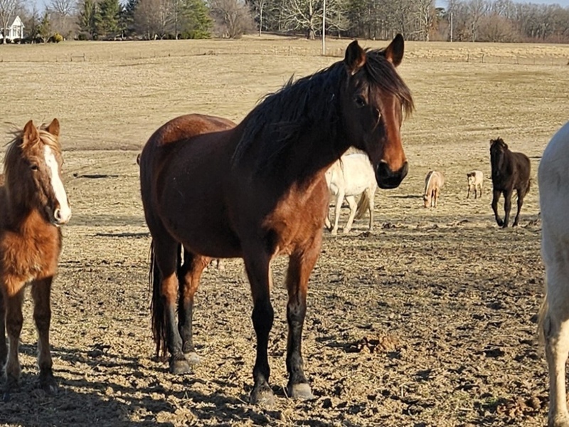 Big beautiful bay roan mare with thick mane and tail and a sweet disposition.